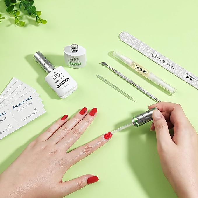 - 【3 Steps to Remove】1. Buff the top coat 2. Apply liquid latex on the skin around the nail (if any) 3. Apply gel nail polish remover and wait 2-5 minutes. Gel nail polish will burst and then it is easy to scrape off with the included tool. Note: Please read the instructions carefully before use for best results.