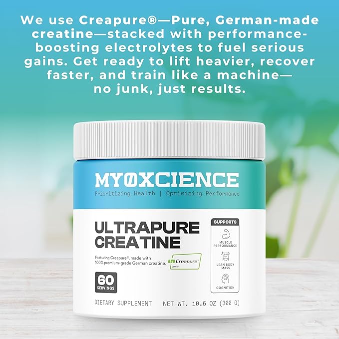 MYOXCIENCE UltraPure Creatine | Featuring Creapure | Supports Muscle Performance, Cognition and Lean Body Mass | 60 Servings