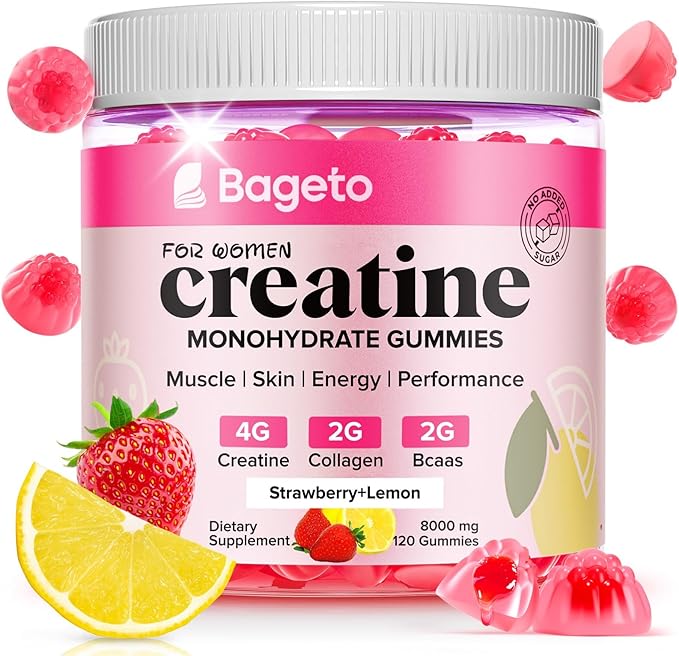 - FOR HER EXPERIENCE: Bageto flavored creatine monohydrate gummies for women are a tasty, chewable alternative to messy creatine powder for women and hard-to-swallow creatine pills or capsules — perfect for busy moms, fitness lovers, and career-driven women. With a refreshing strawberry-lemon flavor and smooth texture, they’re non-melting, travel-ready, and pre-portioned into 40 servings per bottle. Enjoy an effective, delicious way to stay consistent with your health goals — anytime or anywhere