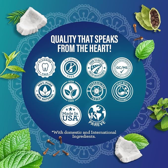 GuruNanda CocoMint Oil Pulling Mouthwash for Complete Oral Hygiene, 7 Essential Oils & Vitamins for Happy Teeth & Gums & Fresh Breath, Alcohol-Free, 33.8 Fl Oz/1L