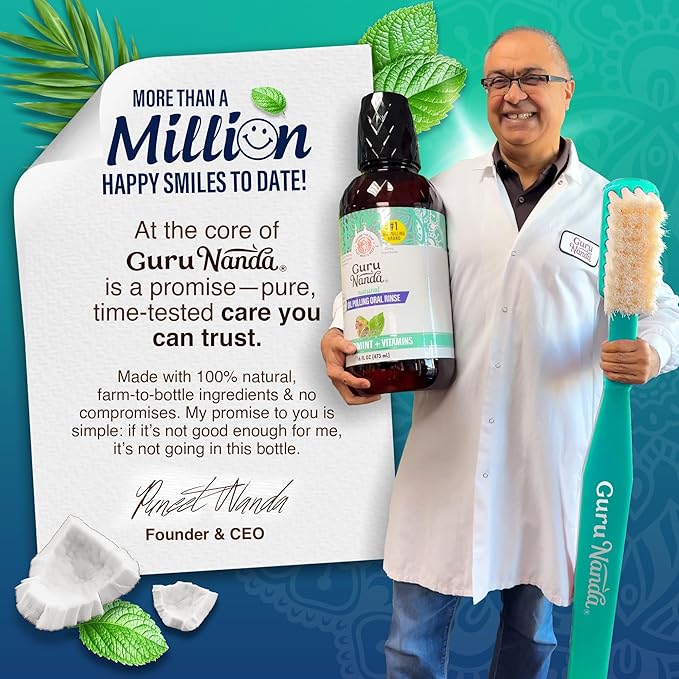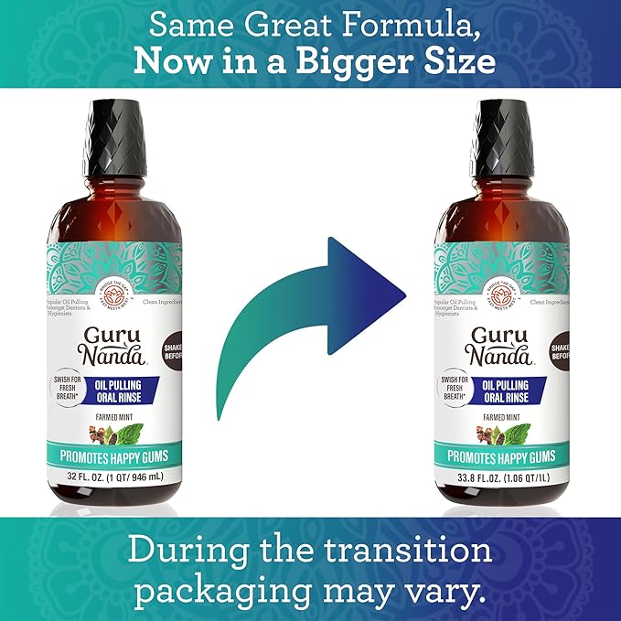 - GuruNanda Pulling Oil Mouthwash is a natural, pre-brush rinse inspired by Ayurvedic wisdom. It comes in a 32 fl oz bottle, which acts as a refill for your 8 oz bottle.
