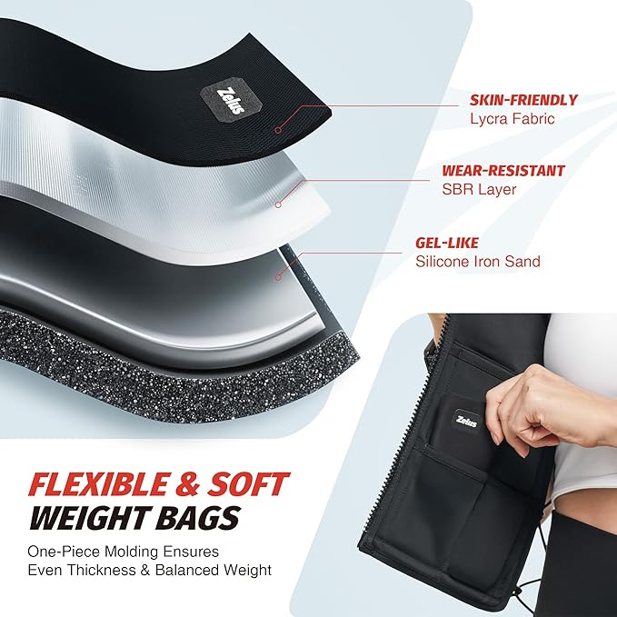 - Z-Fit Soft Weights: This 10 lb. weighted vest by Zelus adds adjustable weights to your workouts using Z-fit soft iron weights for balanced resistance. They are soft to the touch and slide easily into the vest pockets without needing extra clips