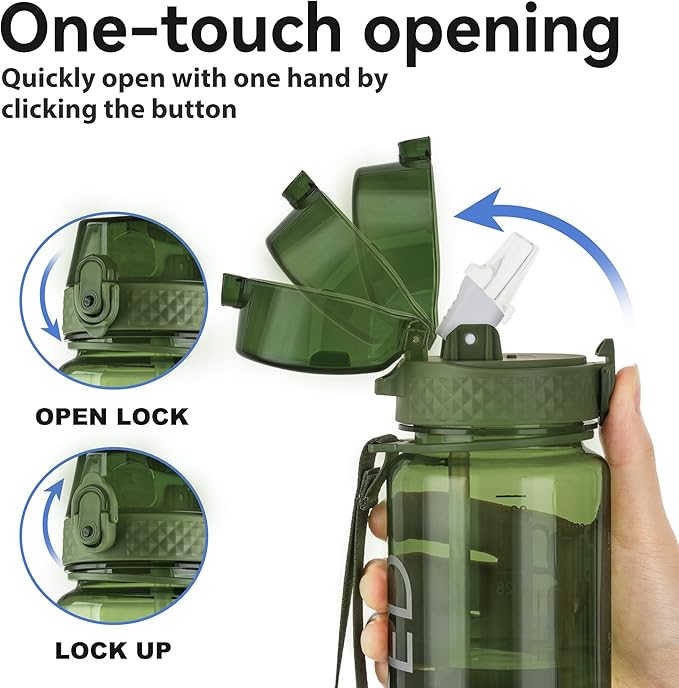 - 【𝐐𝐮𝐚𝐥𝐢𝐭𝐲 𝐃𝐞𝐬𝐢𝐠𝐧】Unbreakable 32oz Sports Water Bottle - Lock&Go Flip Top with 360° Leakproof Seal for Active Lifestyles (Family-Safe Design) Which Allows You To Hold or Flip The Bottle into Your Backpack Without Worrying About The Water Spilling Out Of The Bottle, Making it a Safe Choice for Men, Women Children, Adults, and seniors