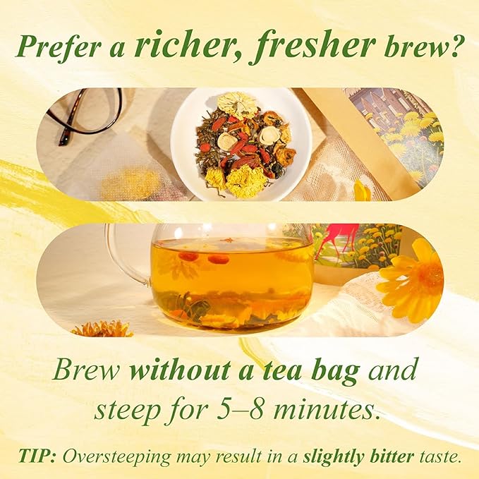- 【Smooth, Sweet Taste with a Subtle Finish】Lightly sweet from goji and licorice, mellow and pleasant. A slightly bitter edge may appear if steeped too long—indicative of its natural herbal roots