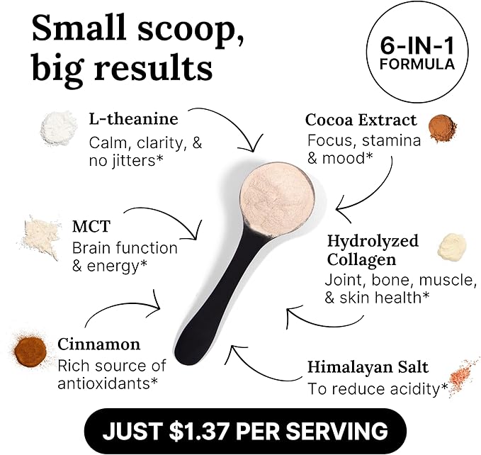 - MENTAL CLARITY, PRODUCTIVITY & FOCUS | Stay locked in and distraction-free. Theobromine, L-Theanine, and coffee’s natural caffeine work better together to sharpen memory, sustain concentration, and support clear thinking so you can perform at your best.