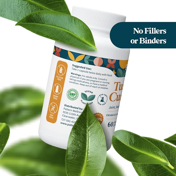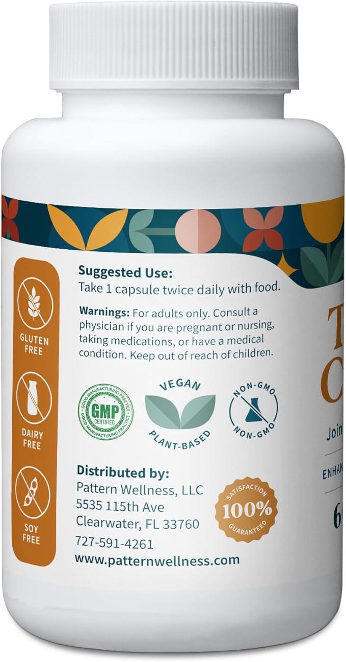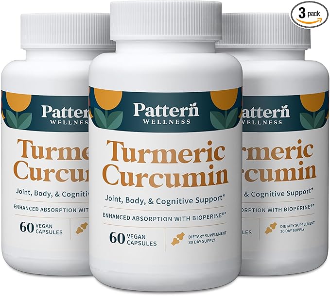 Pattern Wellness Turmeric Curcumin – 1300mg – 95% Curcuminoids with BioPerine® Black Pepper – Joint, Cognitive & Immune Support – Non-GMO, Gluten Free – 180 Capsules