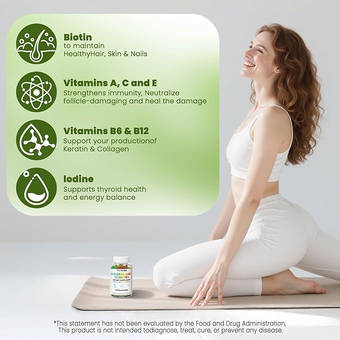 - Nourish Your Natural Radiance: Each gummy helps support healthy hair growth for fuller-looking locks, promotes stronger nails to reduce brittleness, and supports radiant, supple skin