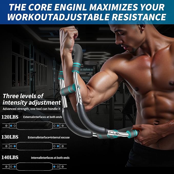 - [Adjustable resistance design] Two-position two-level adjustment mode, three-speed adjustable strength, 120-140lb adjustable resistance chest exerciser for men, suitable for users of different fitness levels, from beginners to professional athletes, you can customize the training intensity