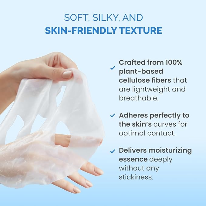 - KIND-TO-SKIN FABRIC: Single-use face mask sheets designed for quick skincare boosts anytime, anywhere. The mask sits comfortably on the skin for mess-free use