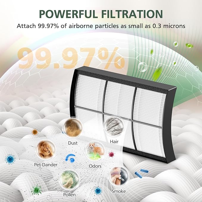 - ใ๐๐จ๐ฐ๐๐ซ๐๐ฎ๐ฅ ๐ ๐ข๐ฅ๐ญ๐ซ๐๐ญ๐ข๐จ๐งใThe premium PureZone Breeze hepa air purifier replacement filter effectively attach all kinds of airborne particles, as well as unwanted odors, such as hair, dust, pet fur, pet dander, pollen, smoke, Vocs and and other tiny particles as small as 0.3 microns, improve the air quality all around