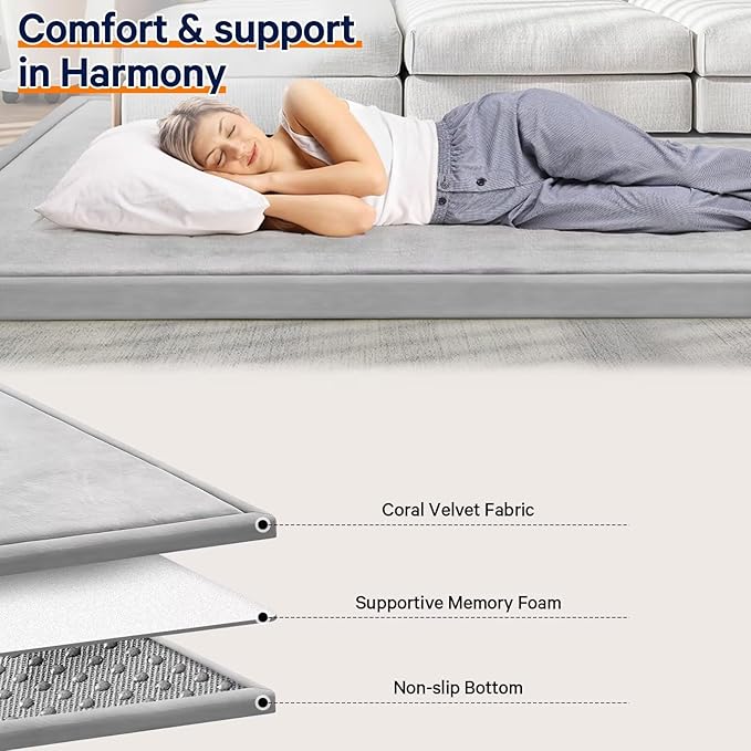 - ๐ฃSAFE & COMFY: Our baby play mat is made of 100% coral velvet material and filled with high-quality 3.5cm thick memory foam,eco-friendly and durable, providing a safe and comfortable play area for your babies, without worrying about them hurting themselves on hard floors.The surface of this tummy time mat is velvet cover, which is not only soft and comfortable to touch, but also has a good cushioning effect.