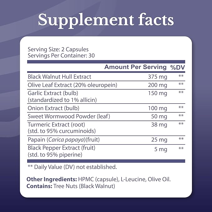 - GENTLE YET EFFECTIVE GUT CLEANSE: Our gut cleanse blend features black walnut, sweet wormwood, and olive leaf extract—a time-tested trio that gently supports internal balance and regularity.