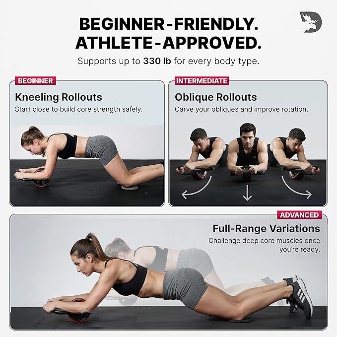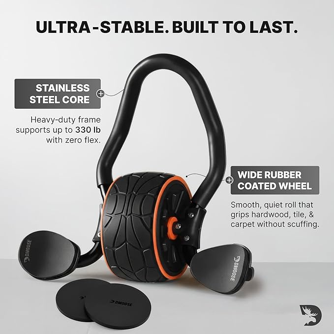 - PREMIUM STAINLESS STEEL FRAME: Crafted with a sturdy stainless steel frame, the DMoose Ab Trainer and Exercise Roller is built to withstand even the toughest workouts. Invest in high-performance tool that will last, helping you stay on track with your fitness journey.