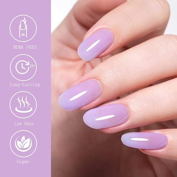 10ml Hema-Free Jelly Gel Nail Polish Set -6 Colors Lavender Pastel Yellow Light Green Pink and Blue Salon Home DIY Gift for Women