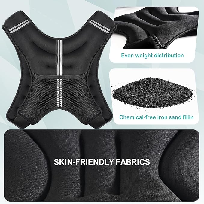 KHTO Weighted Vest Woman Men-5lbs/10lbs/15lbs/20lbs/25lbs/30lbs Weight Vest with Warning Light Reflective Strip for Workout, Strength Training, Running