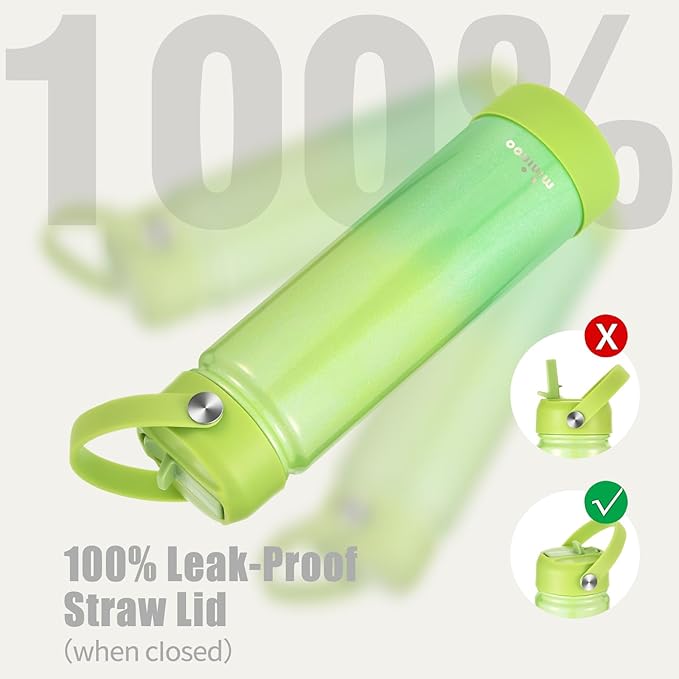 - LEAKPROOF STRAW LID: The 24 oz metal water bottle comes with a 100% BPA-free flip-up straw lid, creating an airtight seal to prevent leaks during intense workouts, commutes, or casual use - perfect for tossing in gym bags without spills.