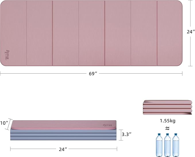 - Thick & Ultra-Comfortable: The WEILA 7-Fold yoga mat features a generous 1/2 inch (12mm) thickness, offering superior cushioning for gym workouts, home fitness, or pilates. Its supportive surface helps protect knees, elbows, and spine from hard floors, so you can exercise in total comfort