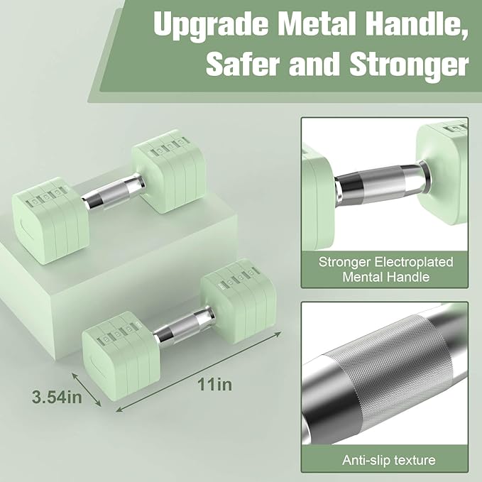 - 【Square Weight Block】Our adjustable dumbbell set has a square shape, allowing you can find more usage of the weight set such as push-ups. In addition, the multiweight dumbbell set will not roll around for safety.
