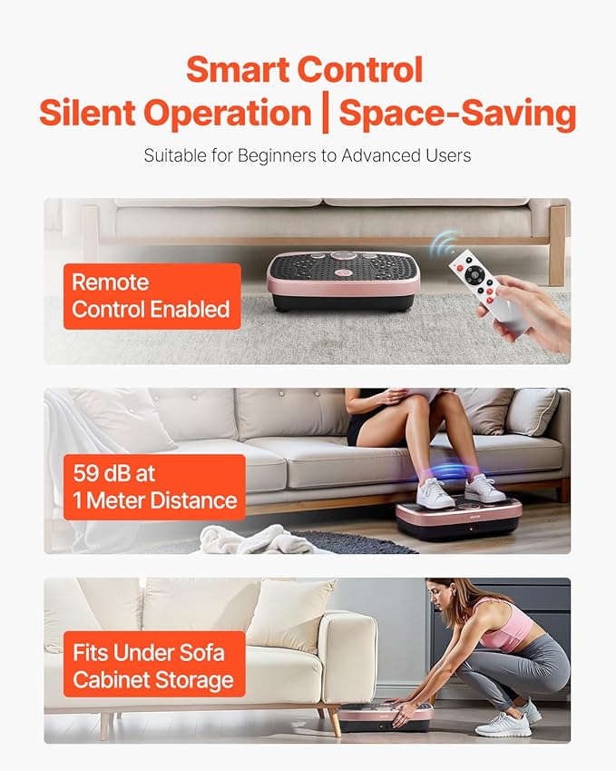 - User-Friendly Design: The vibrating plate supports remote control, with a low noise level of only 59 dB (at 1-meter distance), so it won’t disturb your family. The compact body can be easily stored under a sofa or cabinet, saving space