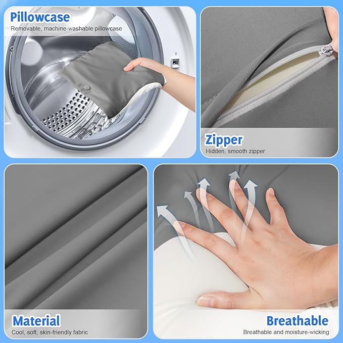 - Skin-Friendly for Sweat-Free Sleep - The orthopedic side sleeper pillow stay cool with breathable 3-layer cover, moisture-wicking cotton surface, airflow-enhancing mesh, and heat-dissipating memory foam allows heat to escape and fresh air to cycle in. Give you the health and comfortable sleep.The soft and skin-friendly pillowcase is removable with a zipper and machine-washable.