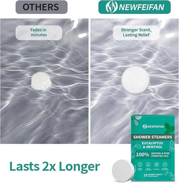 - [ECO-FRIENDLY AND RESIDUE-FREE, EASY TO USE] Take out a piece of shower steamers in aluminum foil and place it in the corner of the shower where the water flow is light, for best results, do not submerge the shower bombs, or put the shower bomb in a yarn bag and hang it up to rins. The intoxicating aroma takes you into a state of relaxation, NEWFEIFAN shower steamers dissolve completely without residue and are non-slip, so they won't clog your home's drainage system