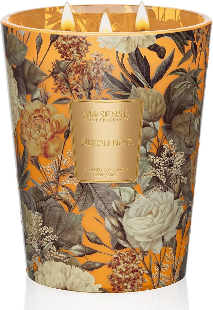 M&SENSE Neroli Noir Scented Candle 3 Wick 35oz 150H Long Lasting, Natural Soy Candles Stress Relief Calm Home Fragrance Housewarming Gifts