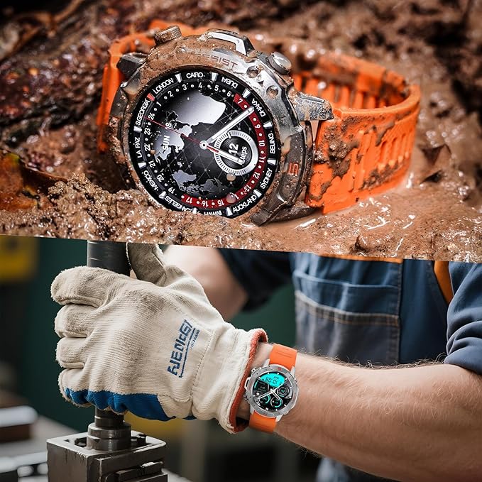 - 【5ATM SWIM-PROOF, OUTDOOR-READY】– 5ATM waterproof for swimming; compass for hiking and trail use. Handy tools for daily and travel: stopwatch, alarm, world time, flashlight, SOS, calculator, camera shutter, find phone. (Lab-tested for cold and impact; do not attempt extreme tests.)