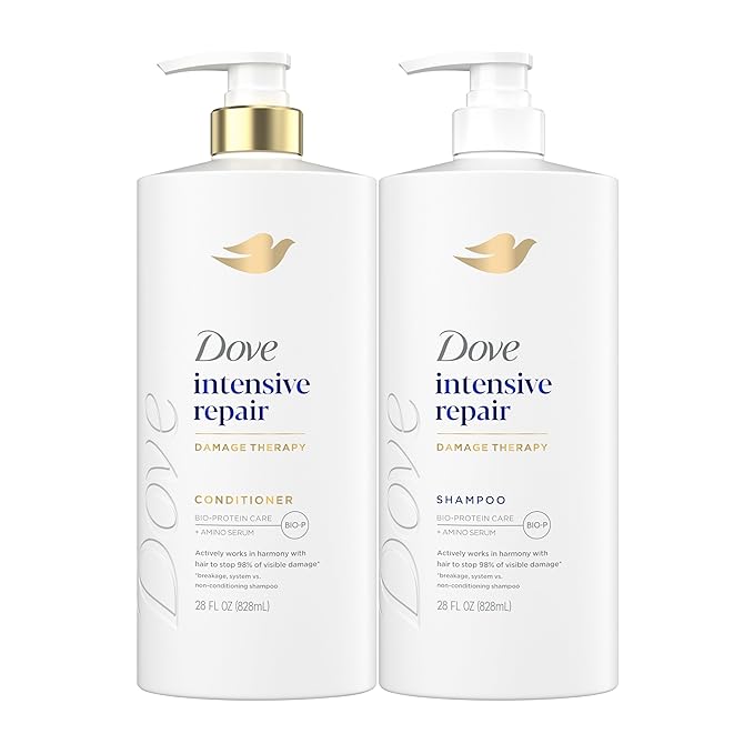 - This regimen pack includes Dove Shampoo for Damaged Hair Intensive Repair with Bio-Protein Care Technology and Amino Serum (28 Fl Oz) and Dove Conditioner for Damaged Hair Intensive Repair with Bio-Protein Care Technology and Amino Serum (28 Fl Oz).