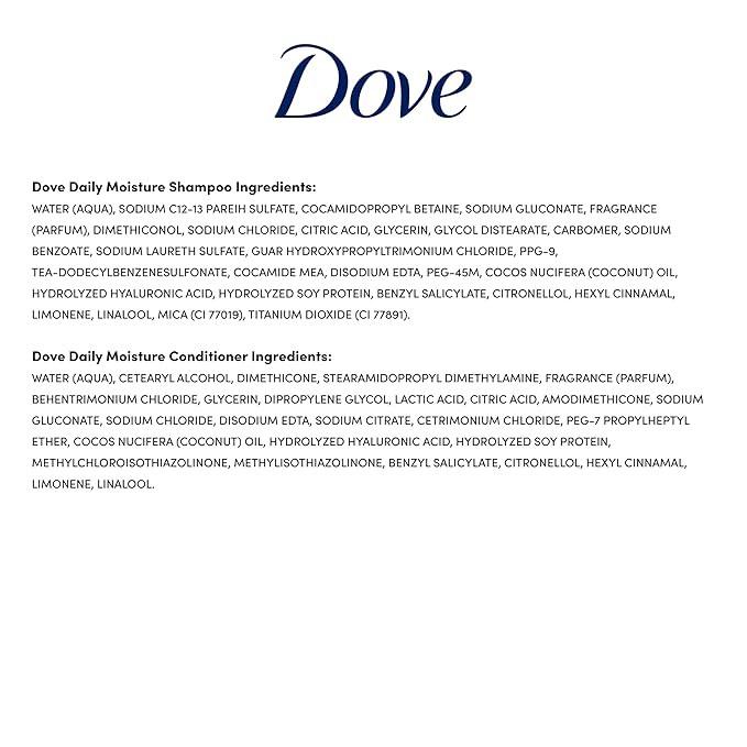 - For best results, use the Dove Daily Moisture Shampoo followed by the Dove Daily Moisture Conditioner. Complement this regimen with the Dove Hyaluronic Moisture Mask once a week for extra hair repair and 100 hours of hydration.