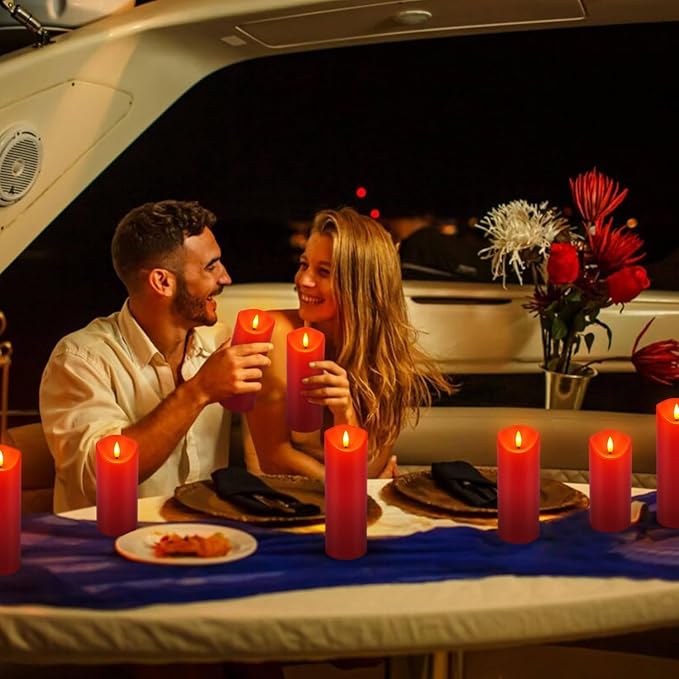 - ▼EXQUISITE 24 PIECES IN 3 SIZES - This value for money set of 24 red flameless candles with 4 remote controls (D: 2.2 inches, H: 5 inches / 6 inches / 7 inches). The size is almost the same as a champagne glass or a traditional tulip glass. The real candles is slightly smaller than the picture.The amazing 10-key remote gives more choices for brightness, modes (flicker/solid light) and a specific timer.