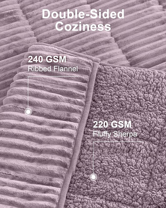 Sherpa Fleece Weighted Blanket with Ribbed Stripes for Adults, 15 lbs Dual Sided Cozy Warm Blanket for Couch Full Size Bed, Ceramic Beads Heavy Thick Blankets Great for Sleep, Light Purple, 60" x 80"