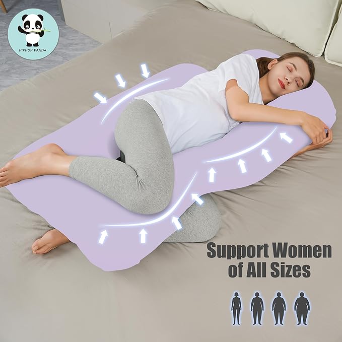 HIPHOP PANDA U-Shaped Pregnancy Pillow for Sleeping - Full Body Maternity Support Pillow with Cooling Removable Cover - Comfort for Back, HIPS, Legs, Belly - 57 Inch for Pregnant Women, Purple