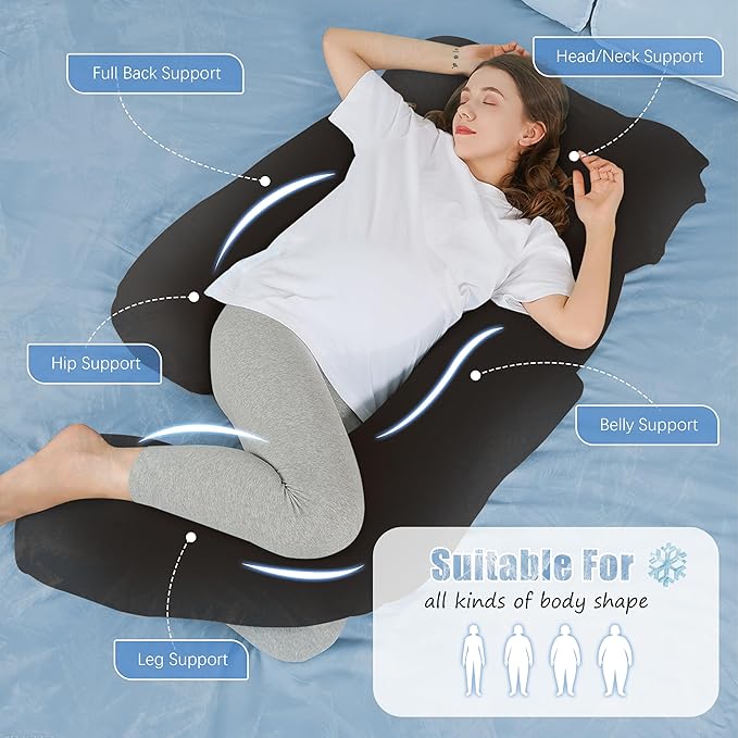 - Ergonomic U-Shaped Design for Total Comfort: This full body maternity pillow cradles your head, neck, back, hips, legs, and belly, promoting better alignment and reducing pressure points during pregnancy; ideal for side sleepers to prevent tossing and turning for a restful night's sleep.