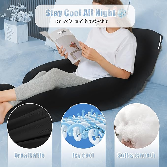 HIPHOP PANDA U-Shaped Pregnancy Pillow for Sleeping - Full Body Maternity Support Pillow with Cooling Removable Cover - Comfort for Back, HIPS, Legs, Belly - 57 Inch for Pregnant Women, Black