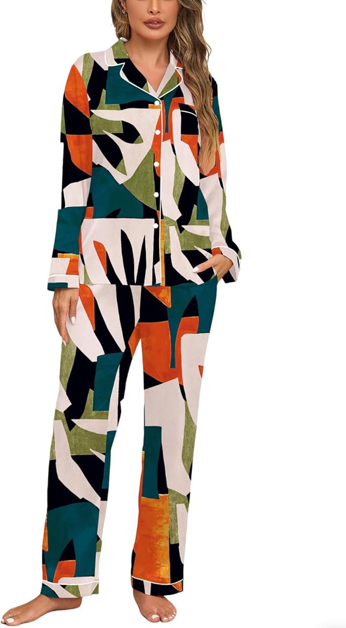 • 【Stylish Appearance】This long-sleeved button-up pajama set showcases a trendy and fashionable design. The classic button-up front gives it a touch of sophistication, while the long sleeves offer a casual and relaxed vibe. Available in a variety of trendy colors and patterns, it allows you to express your personal style even during bedtime.