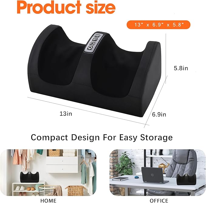 - ๐ใEasy to UseใThe portable mini foot massager weighs only 2.9 pounds, making it easy to carry and store. Plug it in to start a comfortable massage experience, adjust the temperature, direction and massage strength with the buttons, easy to operate.