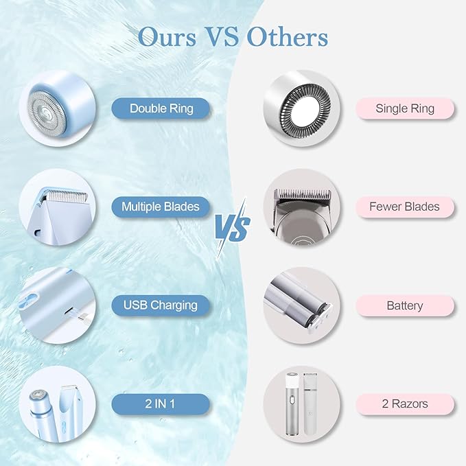 - ๐ใSafe and Easy to Use, Perfect GiftใThis body hair trimmer is innovatively designed with a non-slip handle and ergonomic design, with a highly sensitive head that precisely fits the curvature of the body, whether it's for smooth leg care, underarm grooming or safe shaving of intimate areas. This bikini razors for women is an ideal gift for girlfriends, partners, mothers or friends