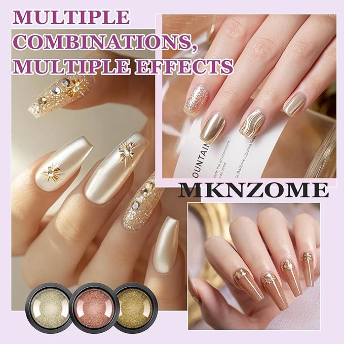 - Metallic Mirror Effect: The ultra-fine powder presents excellent chrome and mirror effects, with high gloss, which can create bright effects of different colors. It can also be perfectly matched with nail ornaments, water ripple patterns, French manicure, 3D shell nails, etc., to unleash your nail art creativity.