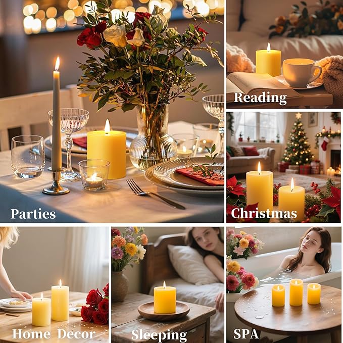 - Elegant-Multi Beeswax Pillar Candles:Perfect Gift-Boxed,these large beeswax candles are great gifts for friends,family and loved ones.Beeswax Pillar Candles with natural honey scent and health benefits-can be used as prayer,Christmas,fireplace,lighting,emergency,wedding,church candles,perfect for all-night celebrations,parties and festivals.You can place it on the dining table,coffee table,bedroom,living room and other home decora to bring a warm and comfortable atmosphere to the space