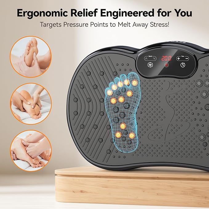 - 300lbs Capacity & Full-Body Activation – Engineered for stability, this vibration plate supports up to 300lbs. High-frequency vibrations engage muscles to improve strength, flexibility, and balance—ideal for fitness routines, toning, and post-workout recovery