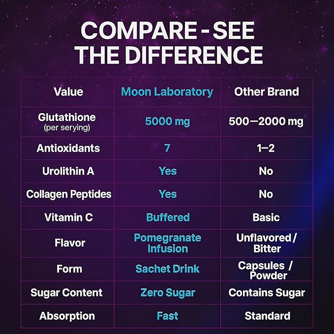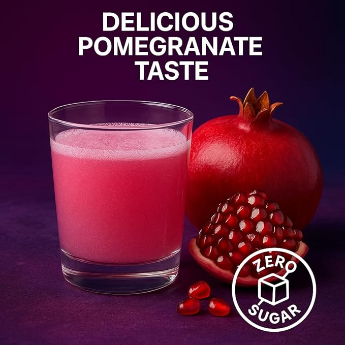 - DELICIOUS POMEGRANATE INFUSION – ZERO SUGAR, DAILY BEAUTY RITUAL Each sachet dissolves into a refreshing pomegranate drink with no sugar and low calories. Convenient 30-day supply designed for fast absorption and daily glow rituals. Perfect for beauty, wellness, and longevity routines.