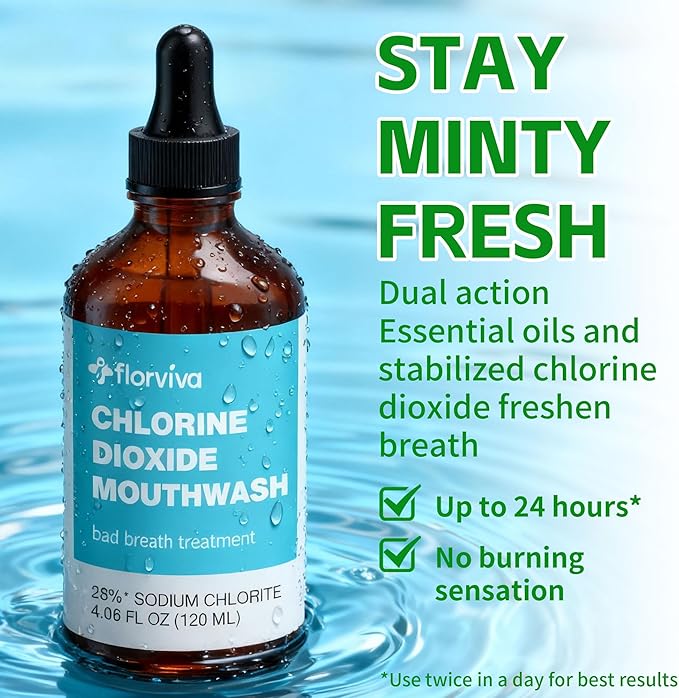 Chlorine Dioxide Mouthwash – Advanced Bad Breath Treatment and Rinse – Neutralizes Odor-Causing Bacteria, Supports Healthy Gum Health, and Provides Long-Lasting Fresh Breath – 4 oz