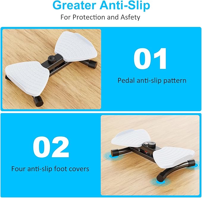 - Silent & Non-Slip Design – Features silent rotation with no squeaking noise. Textured non-slip pedals, anti-slip base, and stable triangular structure ensure safety during intense workouts.