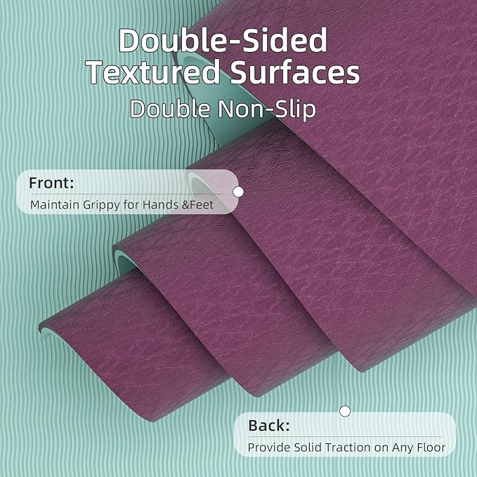 - 【Double-Sided Non Slip Design】: The design of anti-skid texture on both sides on the back features good cushioning and optimal grip, ensuring that you stay in place during even the challenging poses, allowing you to focus on your breath and movement. Our non slip yoga mat is suitable for hot yoga, pilates, and any indoor or outdoor fitness routines.
