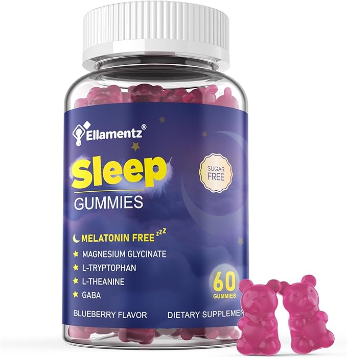 Sleep Gummies Melatonin Free with Magnesium Glycinate, L-Tryptophan, GABA, L-Theanine, Ashwagandha, Natural Sleep Aid Calm Relax Gummy No Melatonin for Adults Extra Strength Without Melatonin, 60Cts