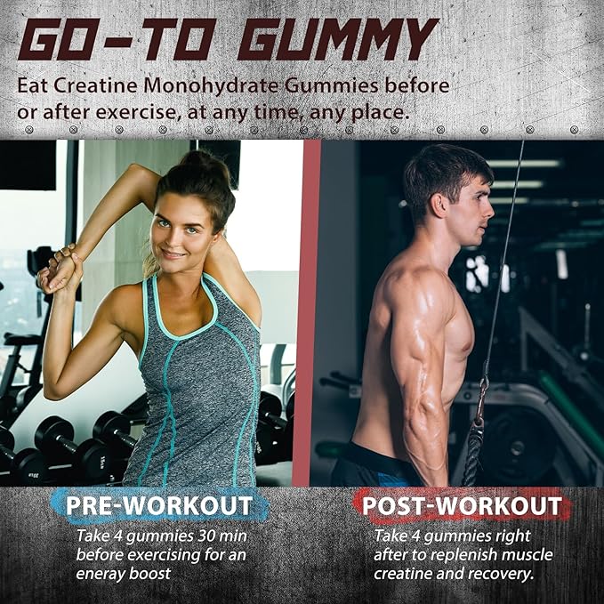 - Go-To Gummy: Compare to creatine powder, our convenient chewable gummies with no powder mixing required, just eat creatine monohydrate gummies before or after exercise, at any time, any place.