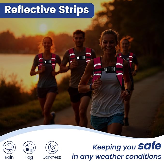 - REFLECTIVE STRIPS - Our pink weighted vest has reflective strips on the front and back to increase your visibility in low light conditions. Greatly improve the safety of your night running or night riding.