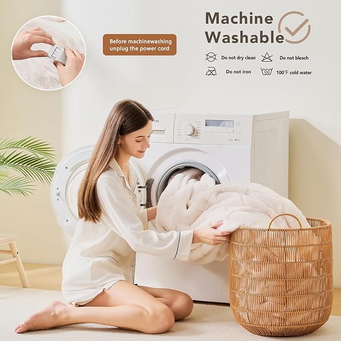 - MACHINE WASHABLE: The heating blanket can be cleaned by machine. Before cleaning, please make sure to separate the power cord from the heating blanket. After confirming that the electric blanket is completely dry, reconnect the controller and use it. You can contact us if you have any questions