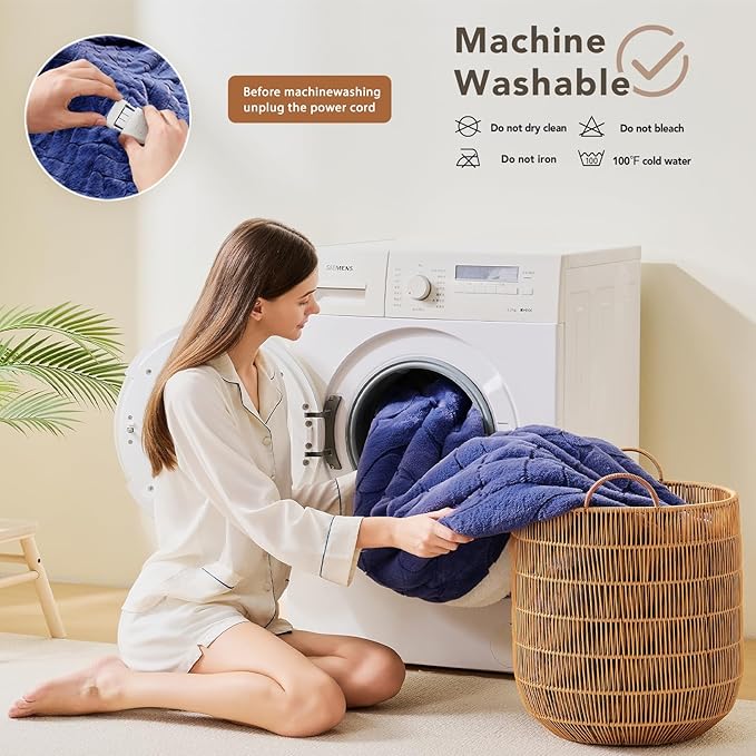 - MACHINE WASHABLE: The heating blanket can be cleaned by machine. Before cleaning, please make sure to separate the power cord from the heating blanket. After confirming that the electric blanket is completely dry, reconnect the controller and use it. You can contact us if you have any questions