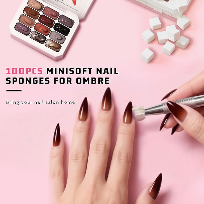 - 【WARM TIPS:】The solid nail gel need to be cured under UV/LED light. For a seamless gradient, lightly dab the sponge onto your nails. Avoid pressing too hard, as this can create an unnatural look.